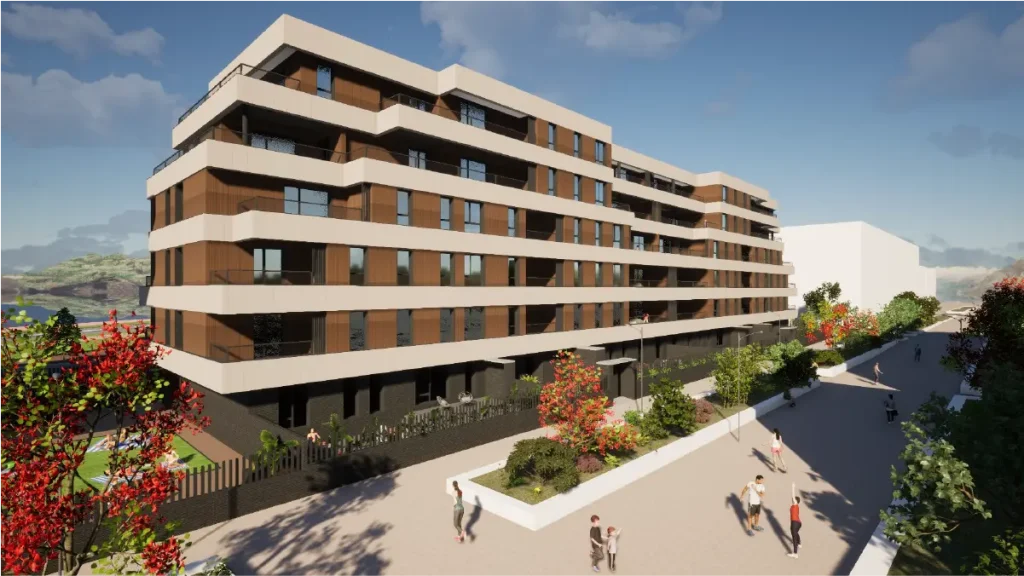 Promoción de 52 viviendas de 2, 3 y 4 dormitorios, ubicado en el centro del barrio de Cascajos, una de las zonas más dinámicas de Logroño.
